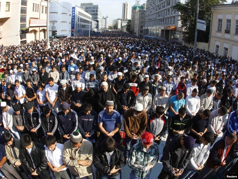 Берүк вакытта Мәскәү мәчетләре янына бәйрәм намазын укырга дип 100 меңгә якын кеше җыела. Гадәттәгечә, урын җитмәү сәбәпле, алар гыйбадәтләрен урам-тыкрыкларда, трамвай юллары өстендә укырга мәҗбүр булалар. Нәкъ менә шушы хәл быел да кабатланды.