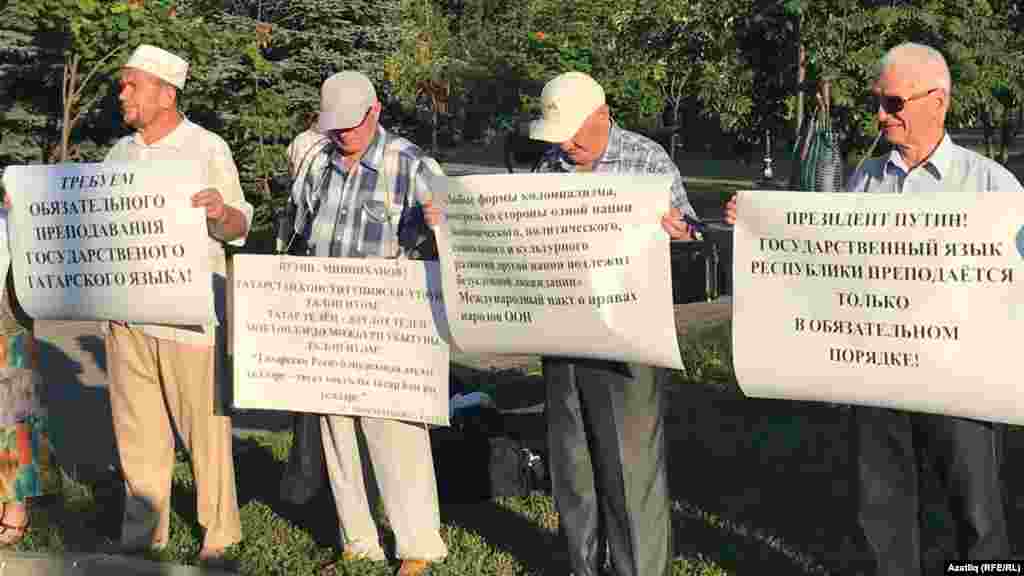7 август Казанның Тинчурин бакчасында Татар иҗтимагый үзәге (ТИҮ) татар телен яклап пикет уздырды. Чарада күтәрелгән шигарләр Азатлык галереясында.