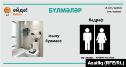 тәрәзә – окно, тәрәзә төбе – подоконник, дивар – стена, идән –пол, түшәм – потолок, ишек – дверь