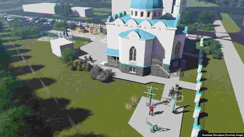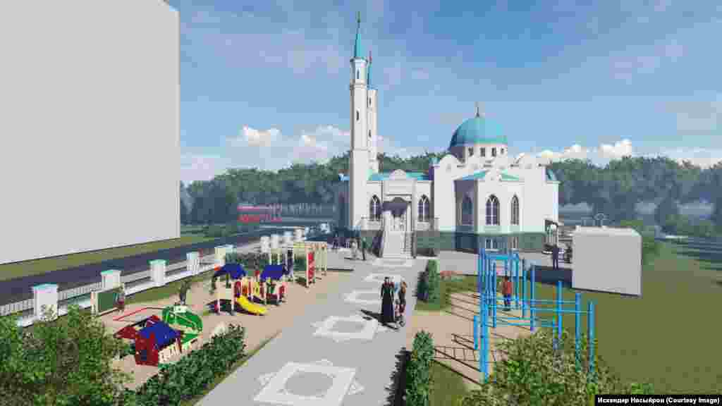 Казанның Авиатөзелеш районында Годовиков һәм Симонов урамнары чатында төзеләсе "Рәхмәтулла" мәчете проекты. Искәндәр Насыйров сурәтләре.