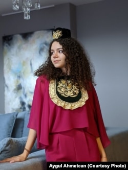 Германиядә яшәүче (живущая) Айгөл Әхмәтҗан архитектор булып эшләсә дә (несмотря на то что работает), буш вакытында (в свободное время) "Learn Tatar" дип аталган (называющийся) проектын алып бара.