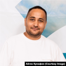 Айгиз Кунафин 2017 елдан бирле (с 2017 года) башкорт теленә басым (давление) башланганнан бирле туган телен яклау, аны үстерү юлларын эзли (ищет пути его защиты и развития), башкорт теле турында чыгышлар ясый, туган телне өйрәнүгә, мәктәпләрдә балалар туган тел итеп башкорт телен сайлауга (выбирать башкирский язык в качестве родного) өнди (призывает).