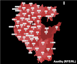 "Сугышта үлүчеләр" хисабындагы харита күрсәткәнчә, иң күп үлүчеләр – Уфа шәһәреннән. Җәйге айларда башкаладан йөзгә якын кеше үлеме билгеле булды.